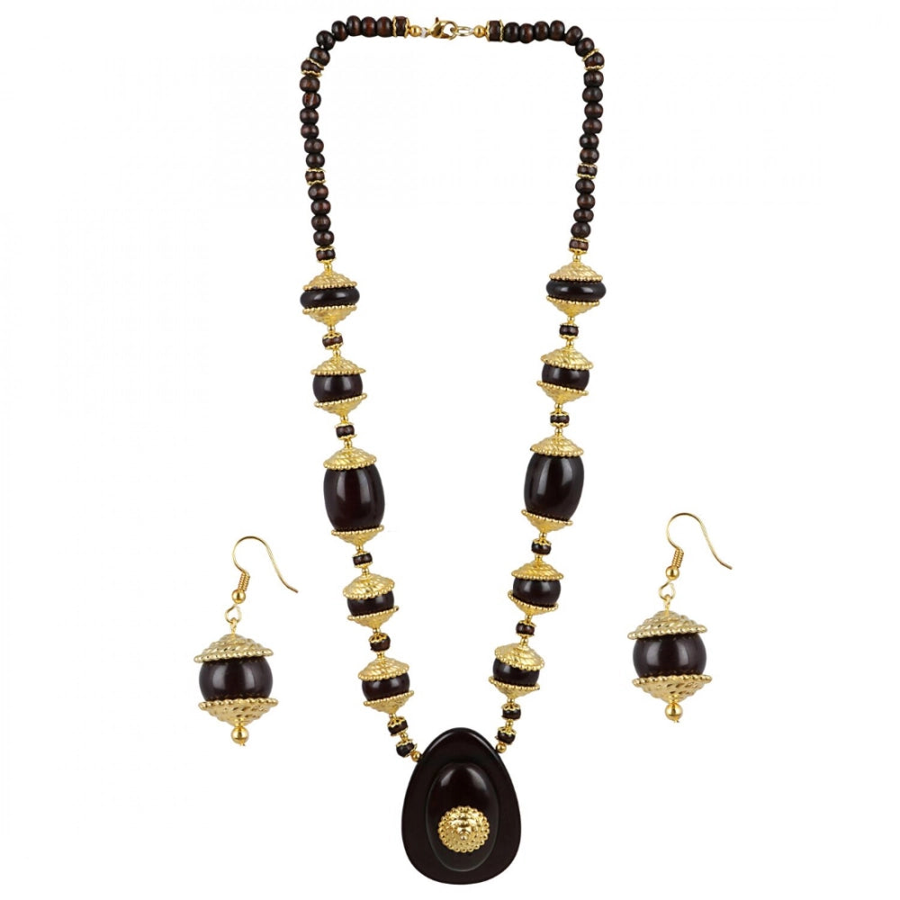 Designer Dark Brown and Golden Beads South Style Necklace